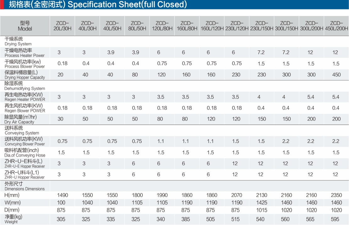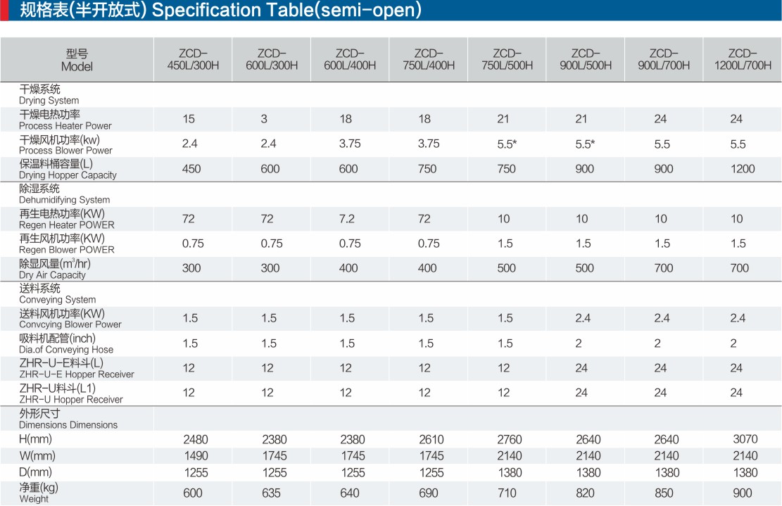 -保温式干燥料桶采用下吹风管设计,搭配旋风排气装置,防止热能散失,确保温度,提高干燥效率;