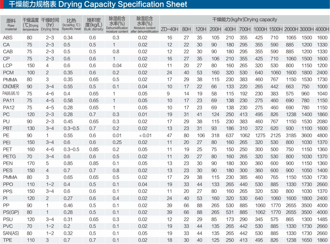 ZD-H系列蜂巢转轮除湿机主要是用来处理吸湿性较强的工程塑胶以进行高效率的除湿作业。蜂巢转轮在理想状态下露点可达到-40℃以下,最大干燥风量可达4,000m3/hr。