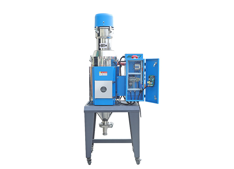 -可选配热风回收器、欧化吸料盒、料斗磁铁、欧化型脚架、储料桶;